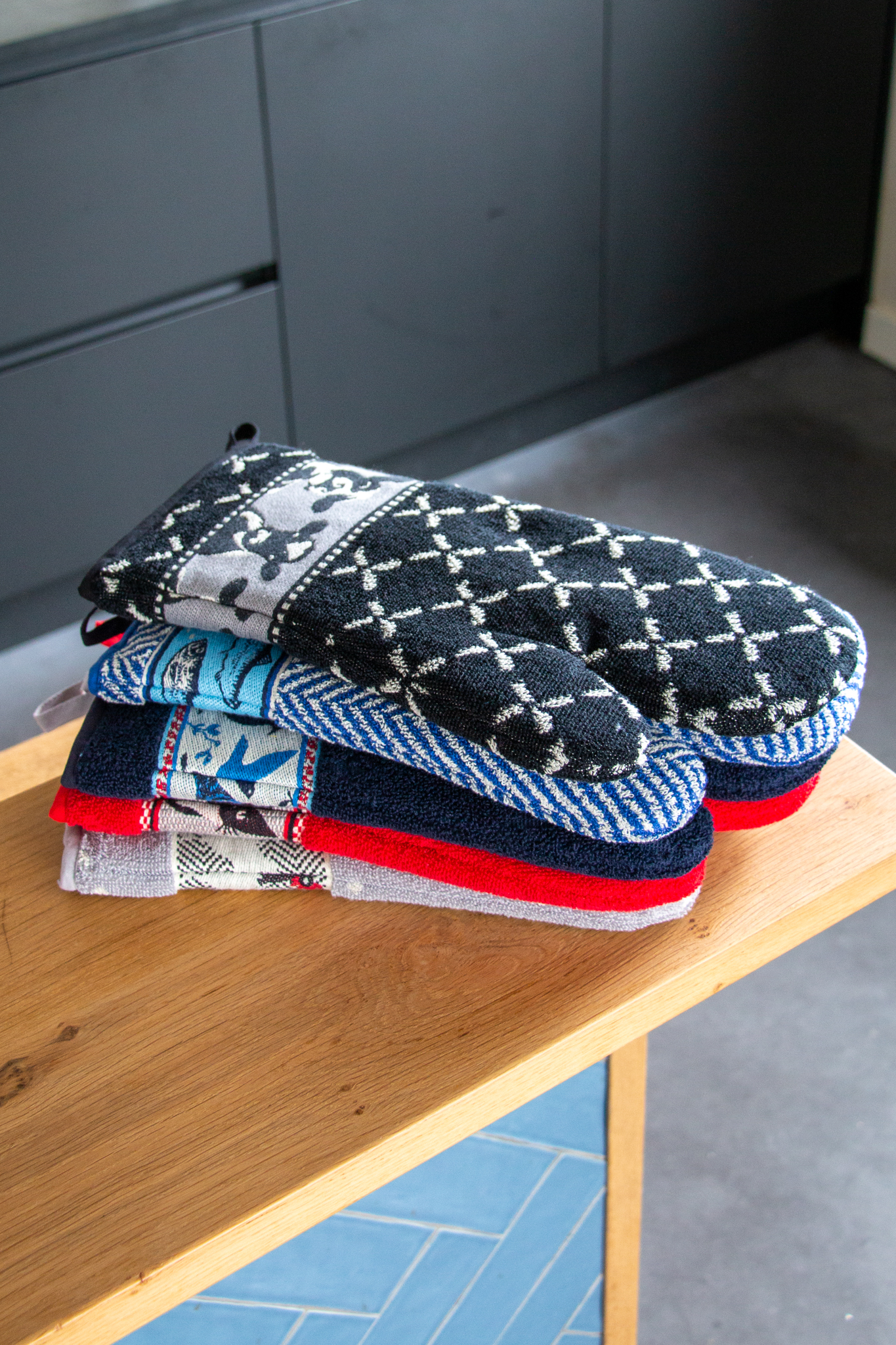 2 ovenwanten Katten d.blauw (6337)